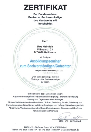 BDSH zertifizierter Sachverständiger